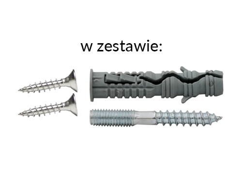 - w zestawie: 1 szt. wspornik poręczy, 1 szt. wkręt fi 8, kołek rozporowy, 2 szt. wkręt do poręczy